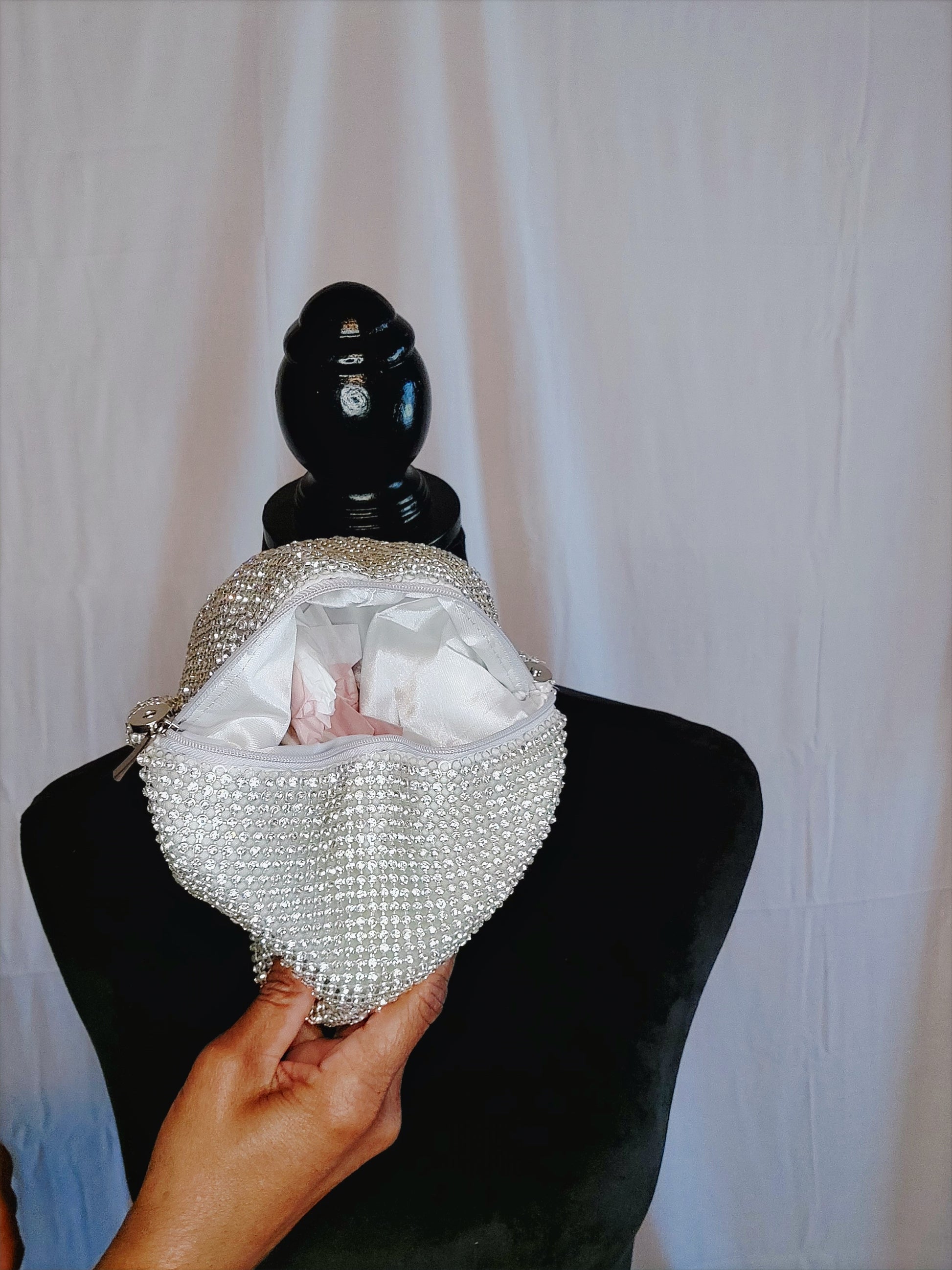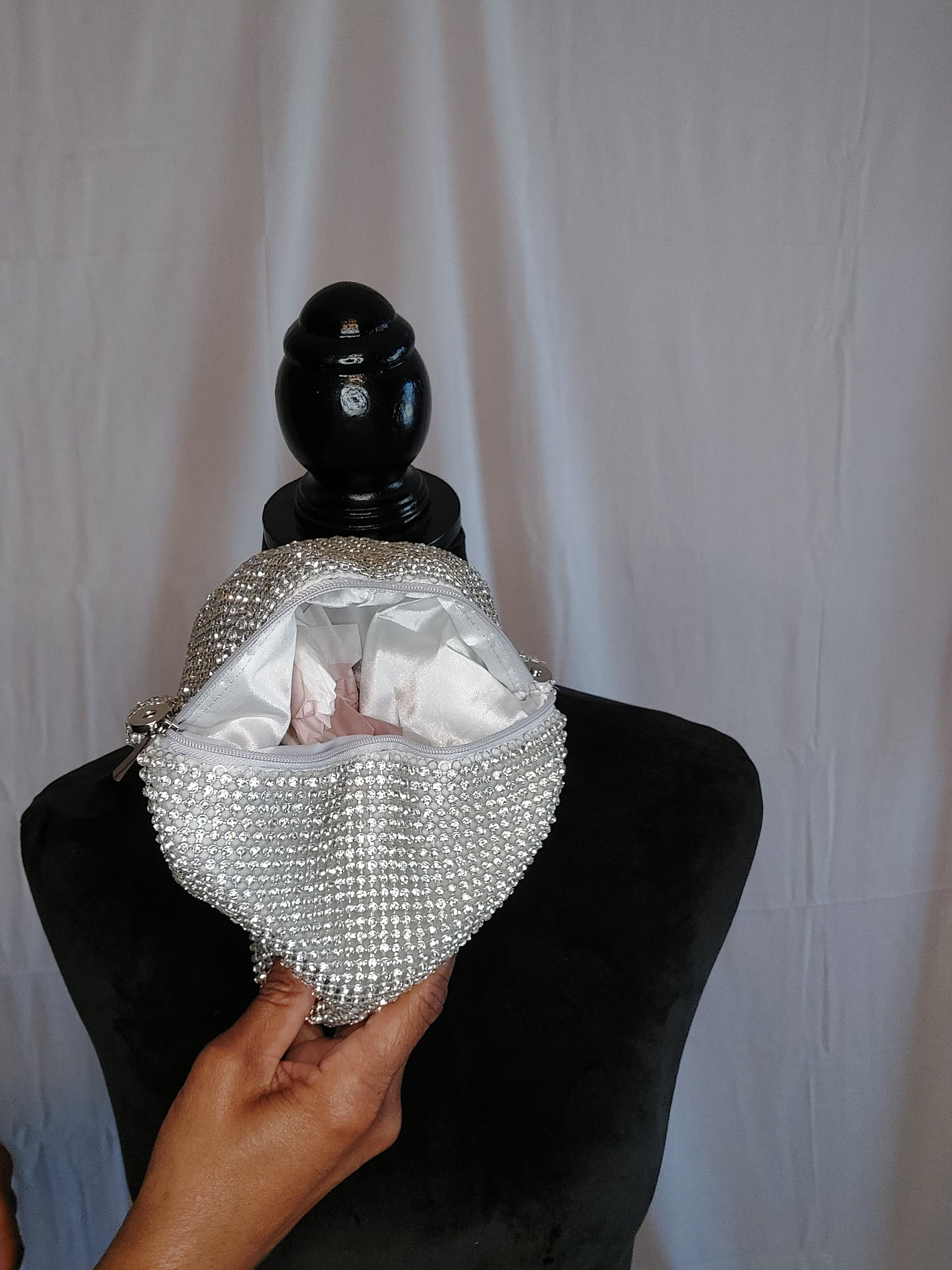 This stylish Silver Triangle Purse is the ideal accessory to complete any outfit. Featuring a beaded, triangle-shaped design with a top zip closure and loop handle, it is perfect for any season and versatile enough for prom, date nights, or weddings.